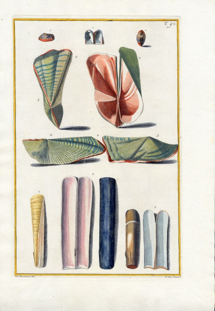 Niccolò Gualtieri (1688 – 1744) was an Italian physician, naturalist, and professor at the University of Pisa. Many of the images in this edition were from his personal and renowned cabinet collection of shells. The beautiful plates were engraved by Antonio Pazzi from original drawings by Giuseppe Menabuoni.