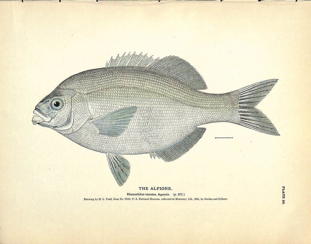 With fine recent hand colouring, these superbly detailed fish drawings by H. L. Todd were based mainly on living specimens or samples at the U.S. National Museum.
