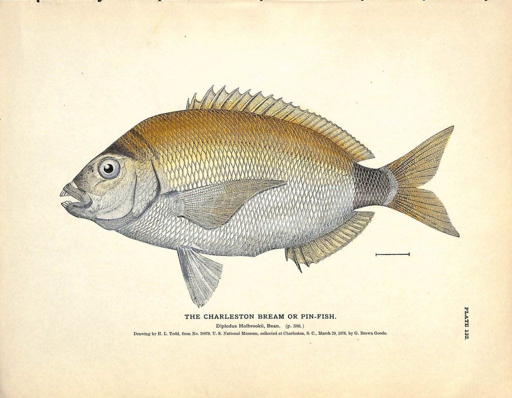 With fine recent hand colouring, these superbly detailed fish drawings by H. L. Todd were based mainly on living specimens or samples at the U.S. National Museum.