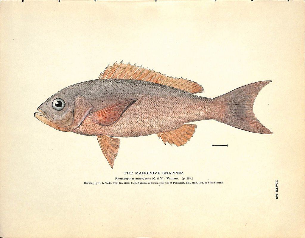 With fine recent hand colouring, these superbly detailed fish drawings by H. L. Todd were based mainly on living specimens or samples at the U.S. National Museum.