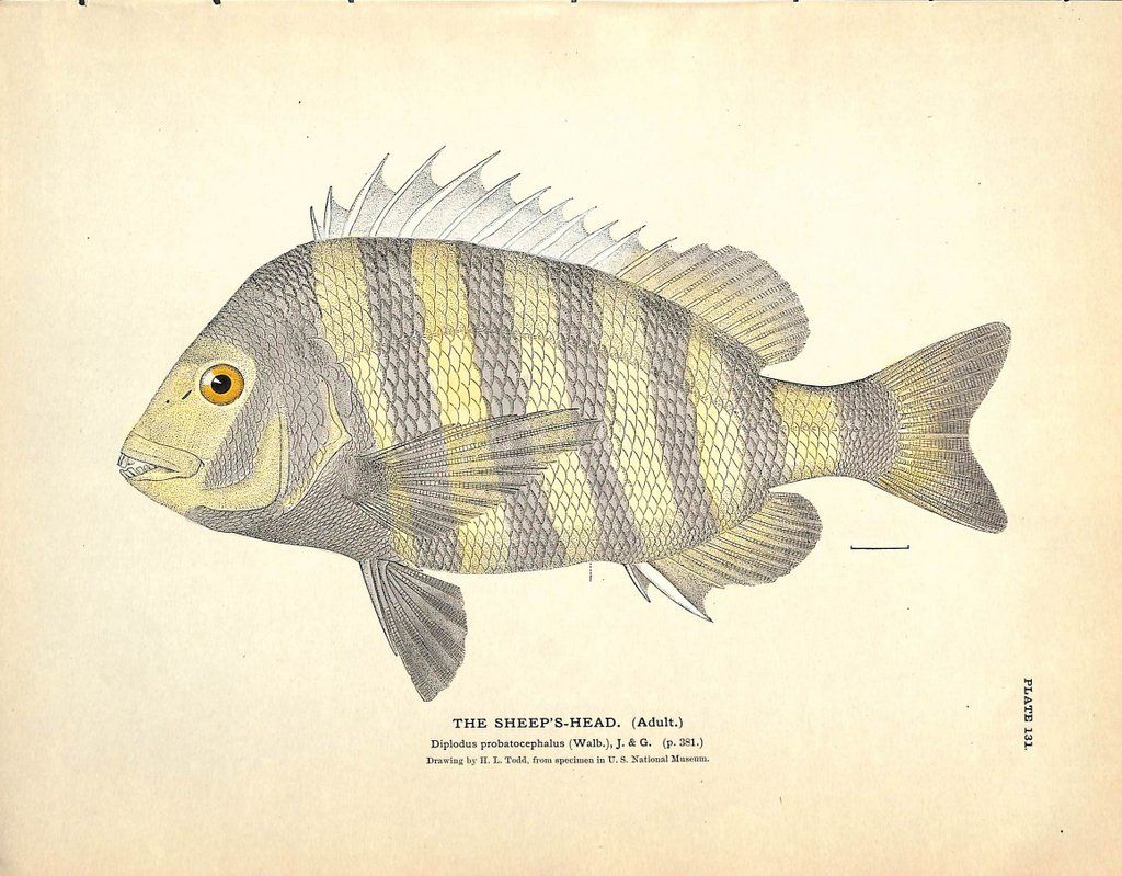 With fine recent hand colouring, these superbly detailed fish drawings by H. L. Todd were based mainly on living specimens or samples at the U.S. National Museum.