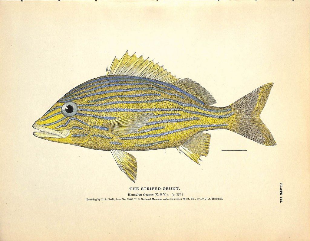 With fine recent hand colouring, these superbly detailed fish drawings by H. L. Todd were based mainly on living specimens or samples at the U.S. National Museum.
